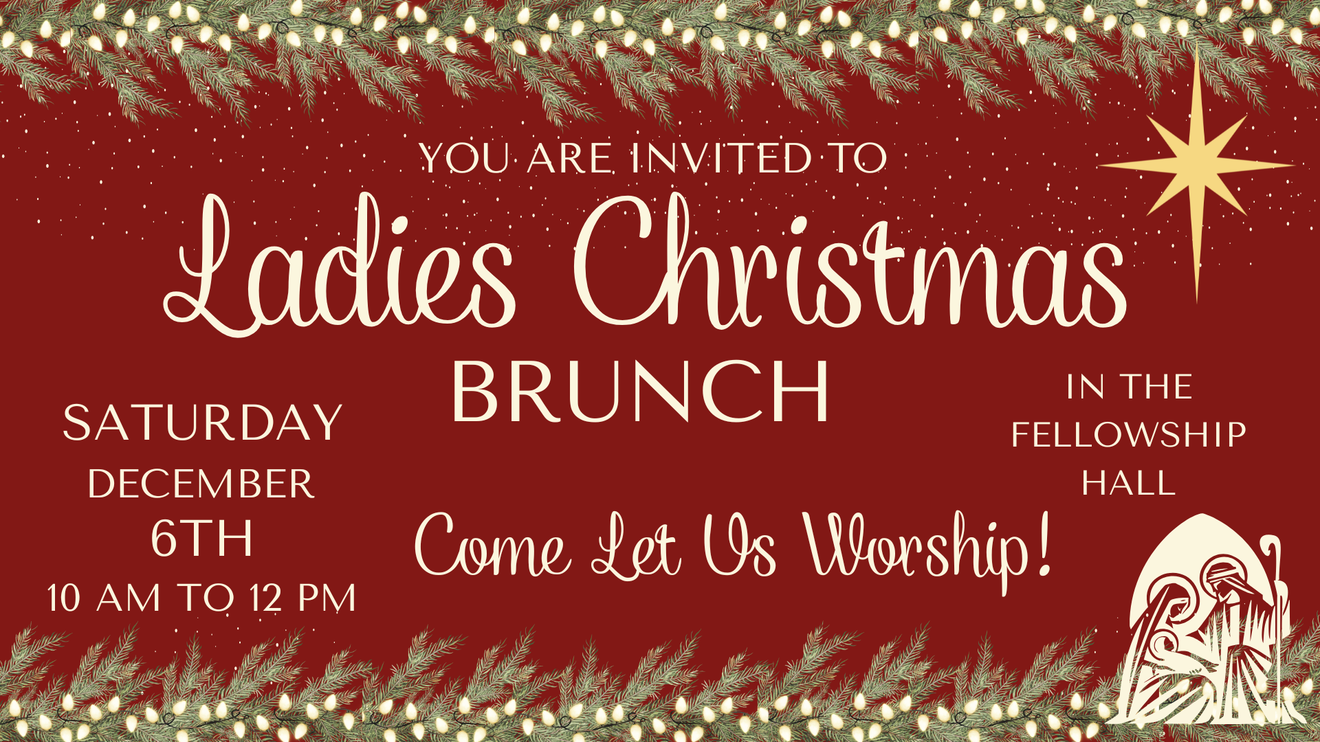 Join us on Saturday, December 6th, for our ladies' Christmas fellowship brunch.