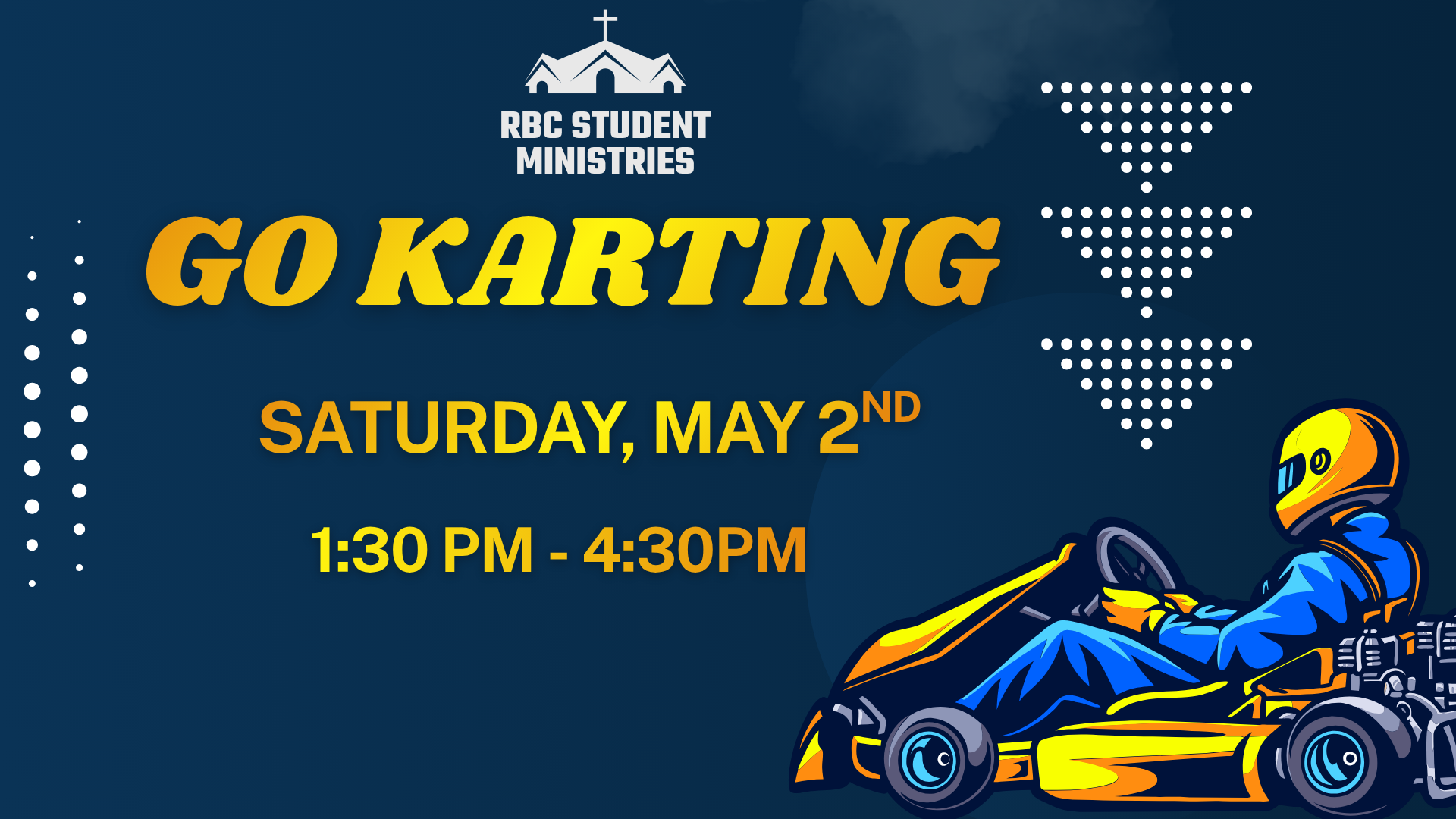 On Saturday, May 2, the RBC Youth Ministry teens will go go-karting. |