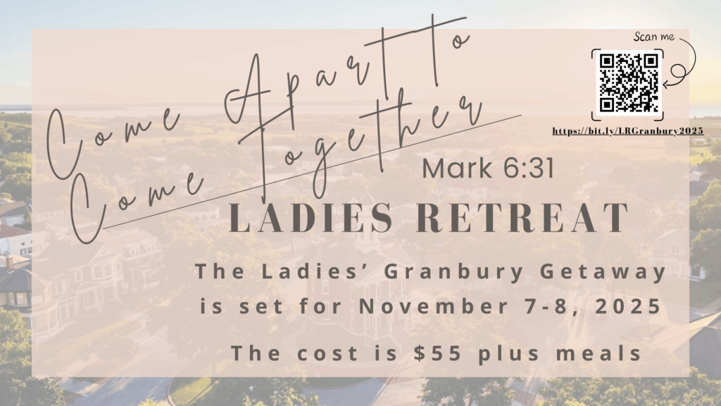 Each year, our ladies getaway for a Friday and Saturday to spend time together to fellowship and to study God’s Word. This year we are going on our “Granbury Getaway” November 7-8. The cost is $55 per person.